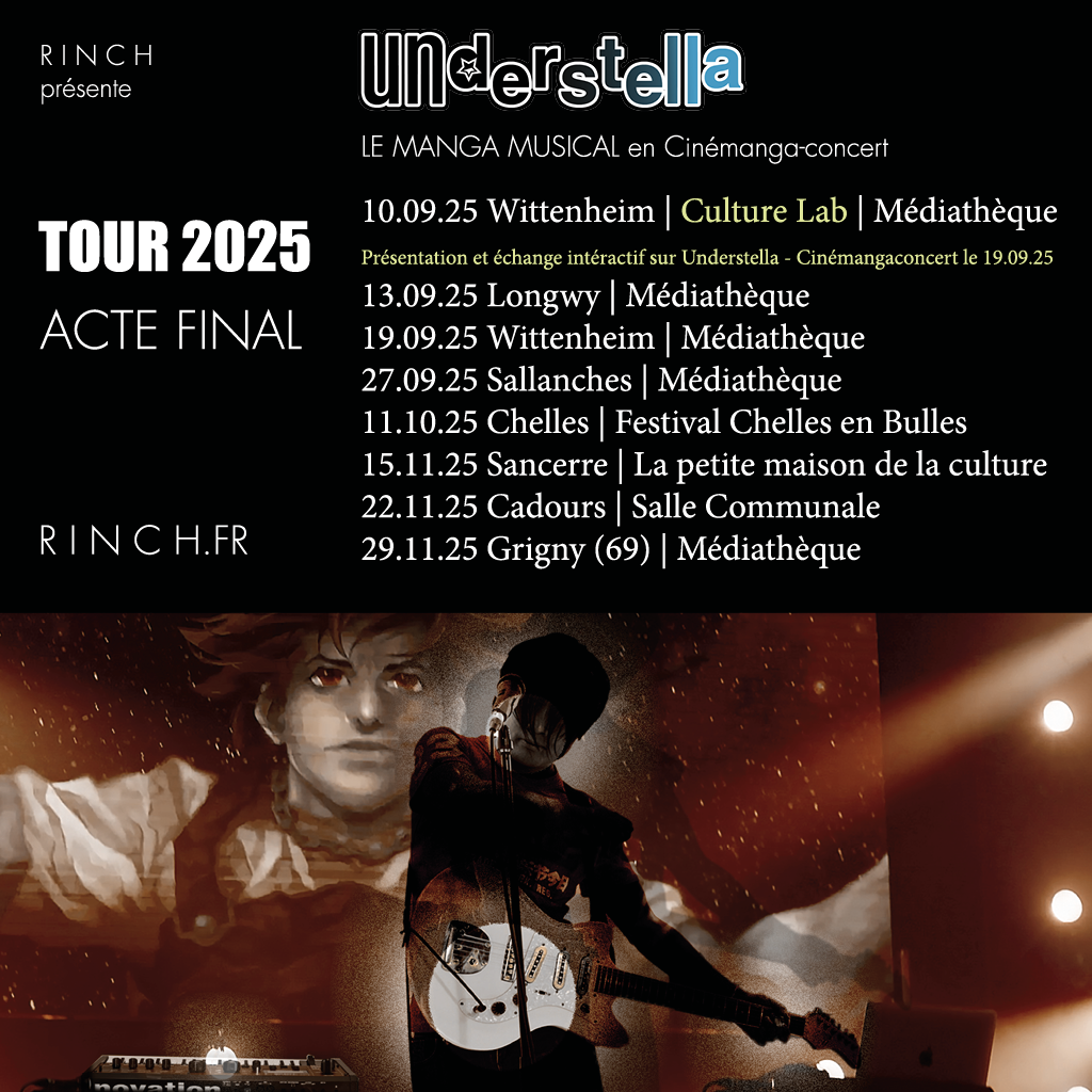 Sur scène l’oeuvre devient un véritable spectacle au format ciné-concert, la narration musicale, interprétée par RINCH s’entremêle harmonieusement avec la projection des planches du manga, alternée par des plans animés.
